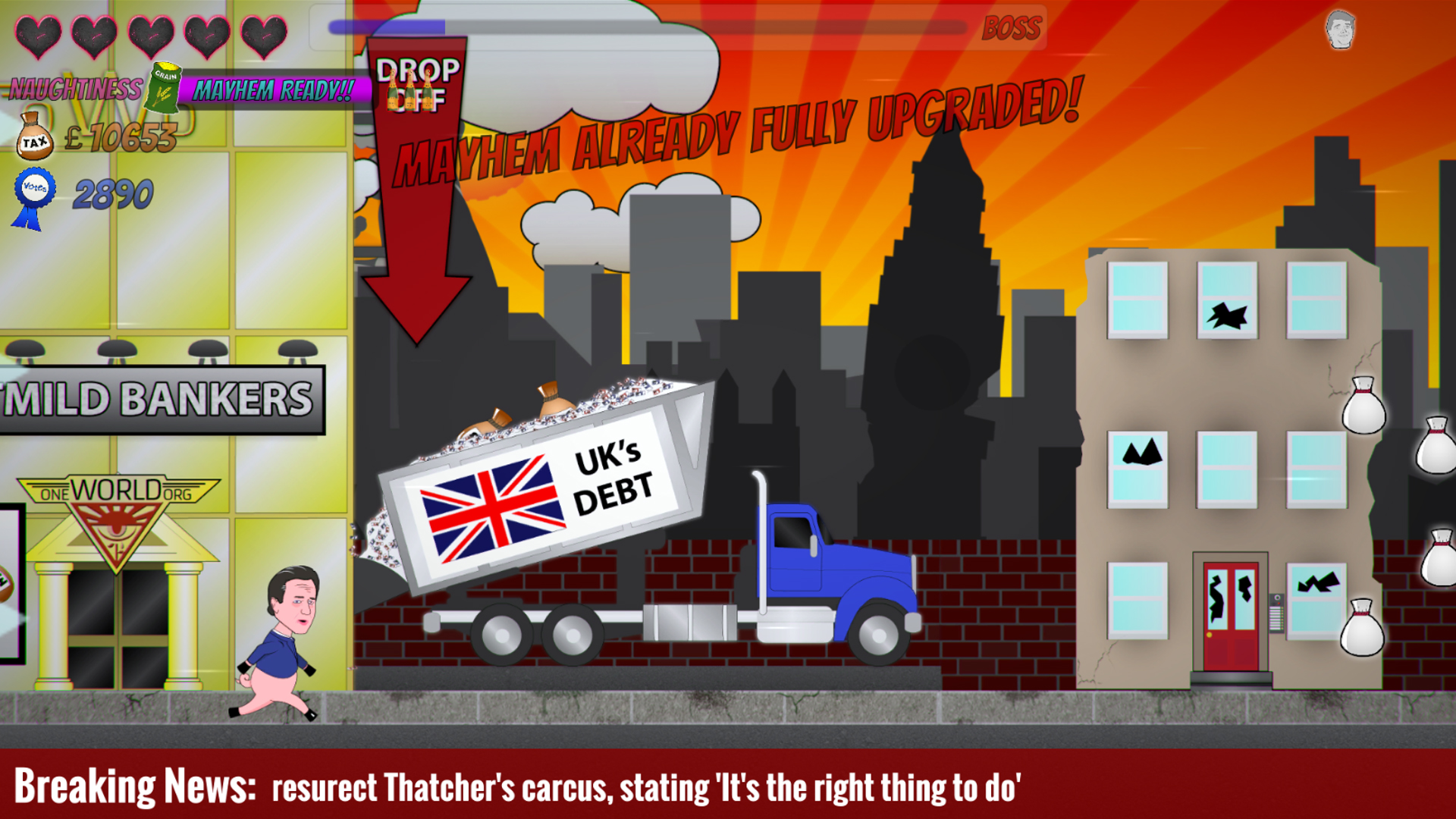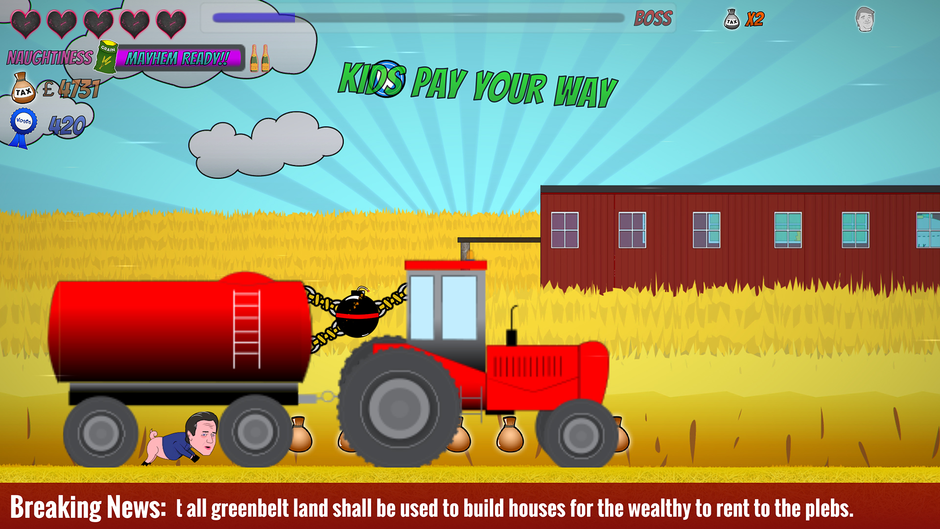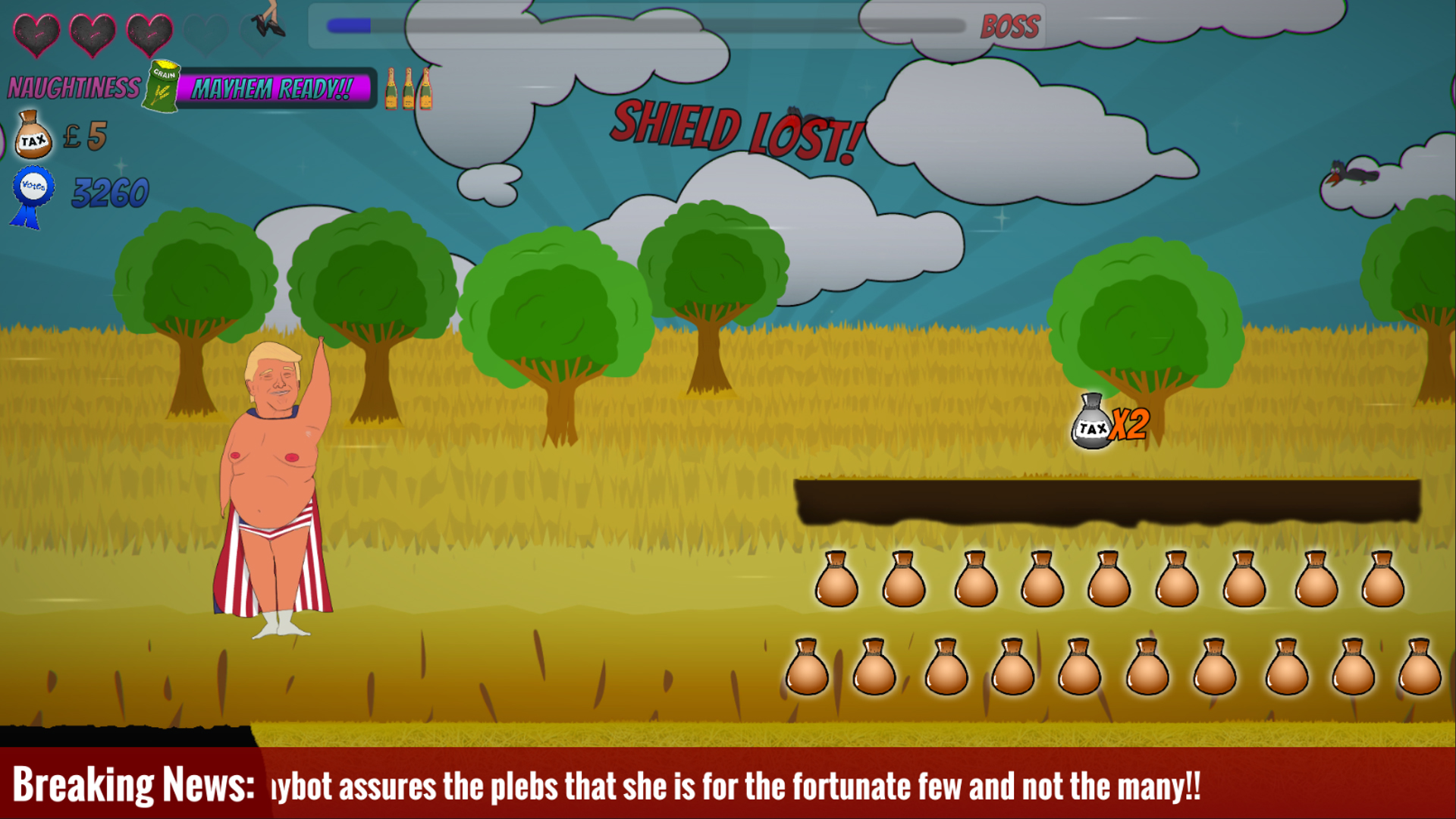 *** As seen on TV on BBC One Sunday Politics ***Help Maybot run, jump, slide, and shoot her way to a strong & stable dystopia in this hilarious political infinite runner. A Game for the ManyPlay the villain, Maybot. Run through randomly generated levels collecting power-ups, taxes, and votes. Jump over crazy enemies from angry farmers to missing nuclear bombs to foxes on horseback blowing bugles. Slide under tractors and ripsaws to avoid death and collect more goodies. Build up your naughtiness to unleash your ultimate form and shoot down massive bosses. Spend your votes in the shop on upgrades and new playable characters, each with their own perk. Rise to the challenge and unlock achievements and make history on the Steam leader-board. You are the Maybot now RUN! Features Run, jump, slide, and shoot for political survival. How long can you stay in power? Battle huge bosses destroying ethics, morality, and hope with your victories. Power up your special weapon to unleash your ultimate form, 'The Dream Crusher'. Collect votes to unlock upgrades and new characters aiding your path to elitist domination. Sprint past famous London buildings and landmarks. Collect tax and claim expenses for elaborate things and high scores. Help Maybot bribe her way to unleash policies and see the world change. Collect in game power-ups such as shields, invincibility, and double tax. Complete tasks to earn Steam achievements. Compete with others for Steam leader-board domination. Quotes from some Reviewers, Youtubers, & Maybot Run Players:“On its surface it's political commentary is blatant and hilariously so, but there's a surprising amount of depth to its cuts.” – Astrid Johnson, Indie Haven“The gameplay is extremely original for an endless runner. The soundtrack is pretty righteous as well.” – Dayton Does Gaming“A tongue in check game that you can get a good laugh at” – Rip Cassidy“The funniest game I've played since Plug and Play” – Mooshi Gamer“Maybot Run has an awesome soundtrack” – Tesla ゴジラ GamingThe Story In 2016 Maybot landed in the UK and quickly took power as an unelected dictator. Help her and her cronies run, jump, slide, and shoot their way to a stronger, and more stable leadership. Wreak havoc on the poor, help the elite, and be as naughty as possible in those wheat fields. With your help Maybot can defeat the coalition of chaos; morality and hope, bringing back the wealth to the elite few and condemning the many to ordinary working poverty. There are girl's jobs and boy's jobs but this is definitely a bot's job.This game is based on true events that may or may not have happened by people who may or may not be real.#MaybotRun Далее