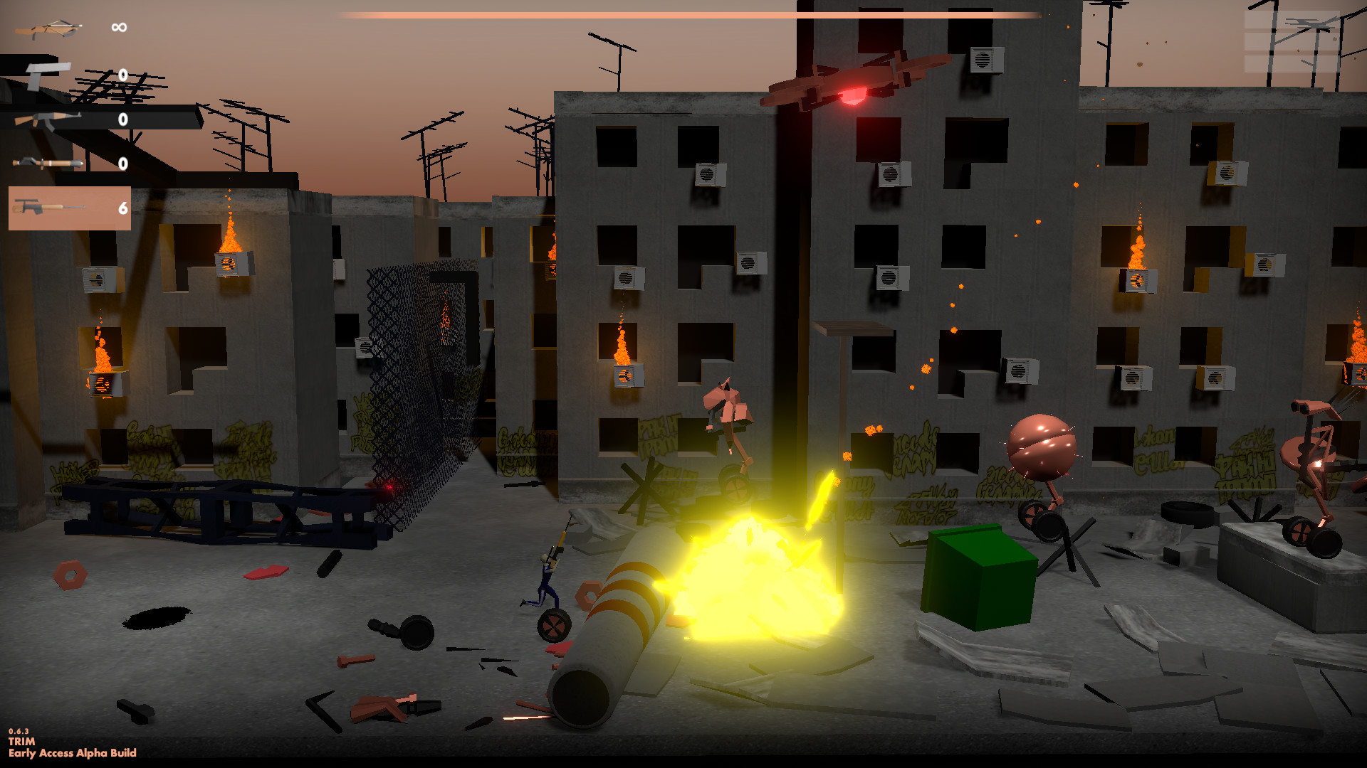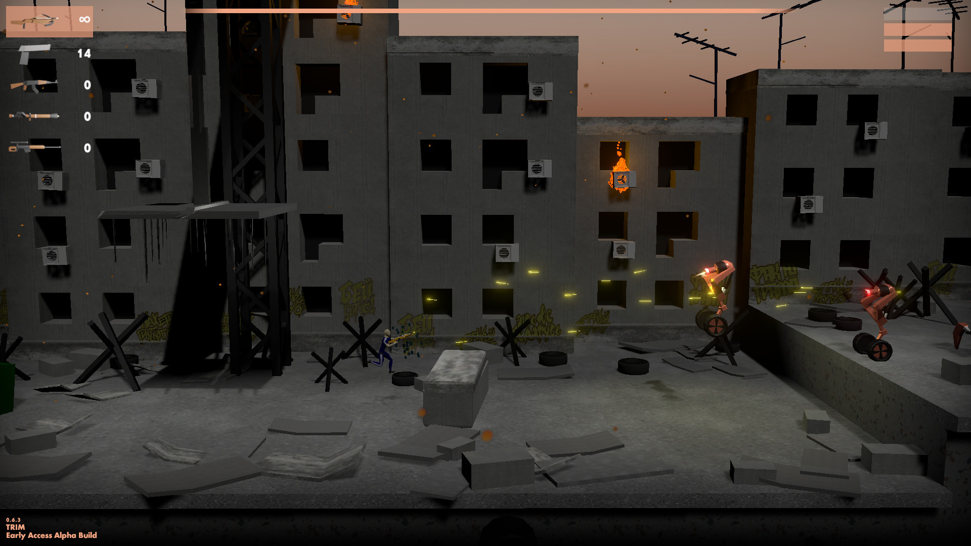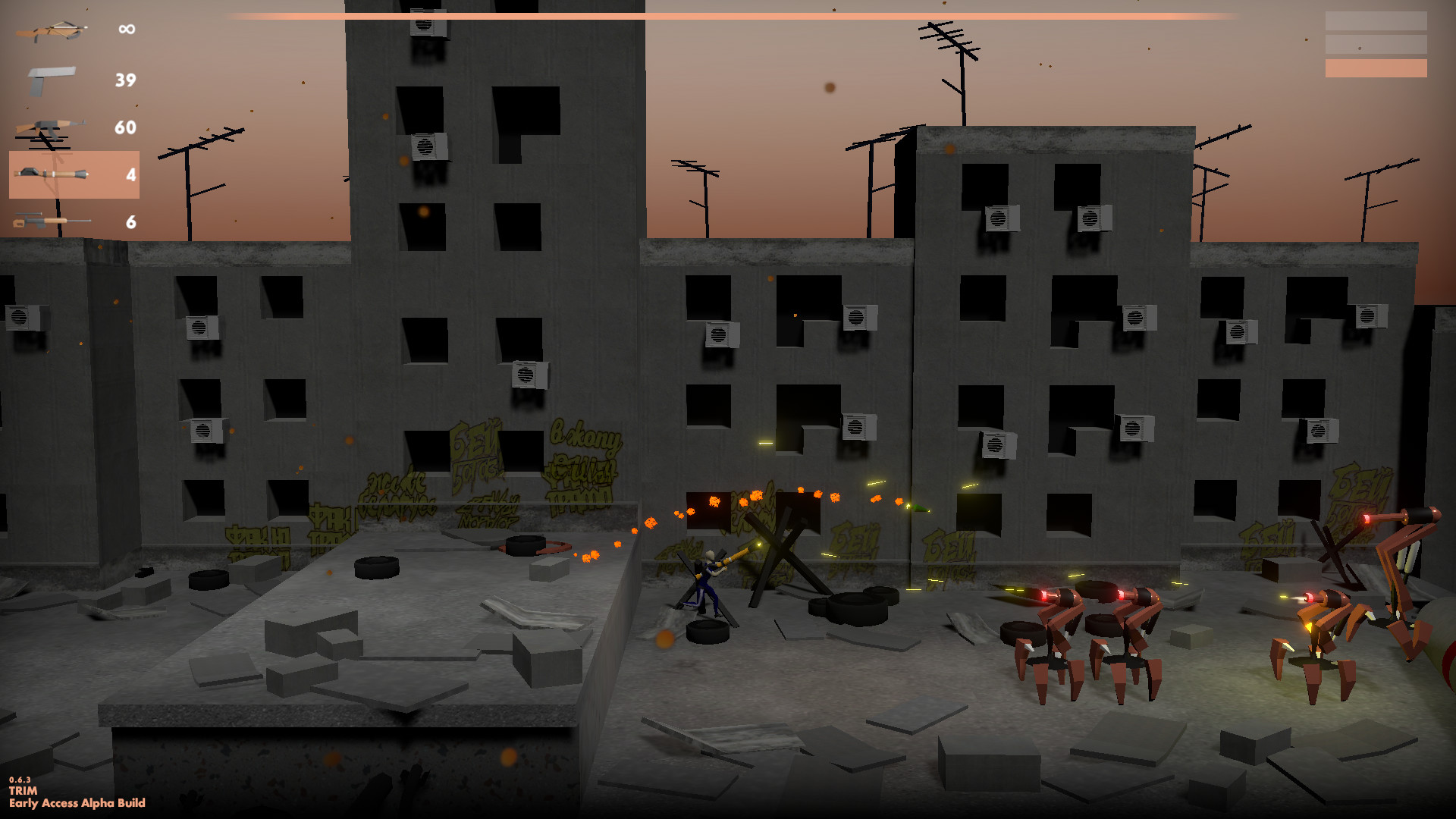 Злые инопланетяне вторгаются в Матушку Россию с помощью сделанных из мусора боевых роботов.Города в огне, граждане уничтожены или бежали. Однако, всё ещё есть небольшая надежда на изменение исхода этой войны.Человек из гетто. Спортивный костюм, классические туфли, шестиуголка. В мире процедурно сгенерированных роботов он носит арбалет, пистолет, калаш, базуку, и неутолимую жажду вражей крове. Или машинного масла, если быть точнее.Герой, которого мы заслужили. Вообще, он -- единственный, кто есть, так что не надо жаловаться. Гопник здесь, чтобы сказать этим механическим ублюдкам: "Эта Россия -- моя".Ништяки. Сайд-скроллер шут-зем-ап 2.5д твин-стик шутер (чумовой перевод жанра, братцы, знаю) Уровни перегенерируются после каждой смерти Враги тоже модульные Геймплей -- постоянная неудержимая стрельба. На самом деле, очень расслабляющее занятие Всякое оружее Три жизни, чтобы пройти уровень Еще больше будет добавлено во время раннего доступа Далее