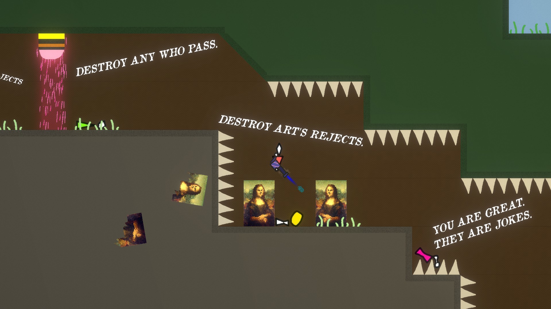 Meet Blot. He's your everyday regular doodle with a vengeance.. and a giant gatling gun. Help Blot along on his quest to take down the fearsome dictator known as Art. Shoot, propel, and pogo your way through dozens of challenging levels to fulfill Blot's destiny!Loads of levels!Strange, yet oddly charming, boss fights!A unique, physics-based way of movement.Quirky humor and jokes. Is this a plus? I honestly don't know.It's a hard game. Both a pro and a con!STEAM ACHIEVEMENTS TO PROVE YOUR TERRIBLE TENDENCY TO BE A COMPLETIONIST!Gatlin' is a physics-based platforming bullet hell where you are the bullet hell! Fling your way across dozens of levels with your trusty gatling gun of doom. Try your best not to die, but believe me, you are going to be dying.You live, you die, you live again. In Gatlin', your main methods of problem solving are your eyes and learning from your mistakes. Upon dying, you are sent back to the start of the level to run through it again until you do it right.I hear you asking, "What causes me to die?" That is an oddly-morbid question, but a question I will answer nonetheless. You'll die to classical art, you'll die to spikes, you'll die to weird demented clones, and you'll die to tears. By the way, that last thing is both figurative and literal.The boss fights in Gatlin' are sentient bullet hells gone rogue. Fear not! They have patterns and tricks that you will likely get accustomed to.Each boss also reveals c r i s p y lore and each boss harbors an unforgettable personality - so that's pretty neat I guess.The endgame of Gatlin' is a distinctive twist on the existing gameplay. After the conclusion of the main story, level modifiers are unlocked. Want levels to be more difficult? We've got you covered. Imagine Hell itself. Good work. Now imagine Hell without gravity and now every surface is covered in soap. Get the picture?Does Hell not sound appealing enough for you? Understandable, everyone's a critic. Instead, we offer a wide array of eccentric and ever-expanding levels, worlds, and challenges to partake in.Gatlin' was and will always be designed with all types of player in mind. If you wish to go slow or fast, the level design panders to all. That said, we highly encourage speedrunning. Далее