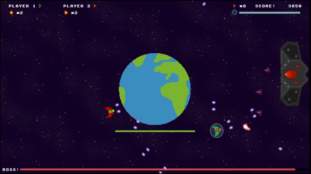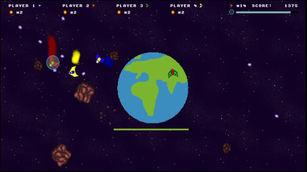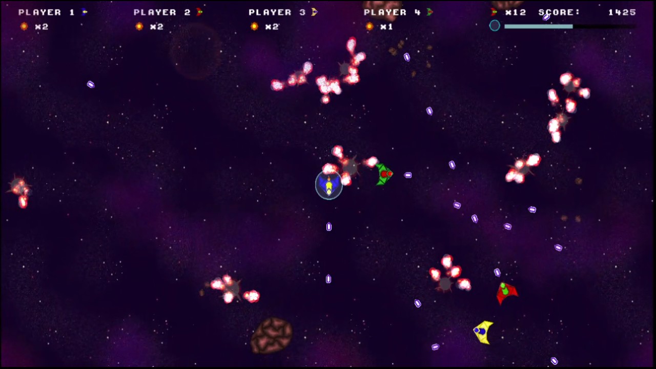 Lead your squad through the possibilities brought by the universe. Either by traveling across the stars or defending your planet, do risky maneuvers near asteroids to acquire protection for all players. Take benefits of power-ups to destroy any threat, who appears on the screen. Survive as a team, score as a team, protect yourself as a team.Explore the outer space destroying asteroids and discovering hostile spaceships scattered across the milky way. For how long will be possible to resist against the constants attacks of those space residents? A meteor rain is threatening the life on Earth and your squad was chosen to preserve it. Beware of imminent danger, an enemy ship wants to take this opportunity to destroy the Earth whenever possible. Besides that, a huge asteroid must be destroyed so it does not cause massive damage to our planet.Two game modes - Get the best score possible in Endless Mode and defend the Earth for as long as possible in Defense Mode.Drift – Do risky maneuvers to fill your shield bar.Couch Coop - Call your friends for a party and have fun across the galaxy. Supports up to 4 players.Leaderboards - Show your friends who have the best squad.Easy to learn - In no time you will play this game like a pro.Quick game - Great to play when the time is short or on the queue for another game.Full controller support - Possible to play using keyboards or controllers.Remap System - Configure your controls as you see fit. Далее