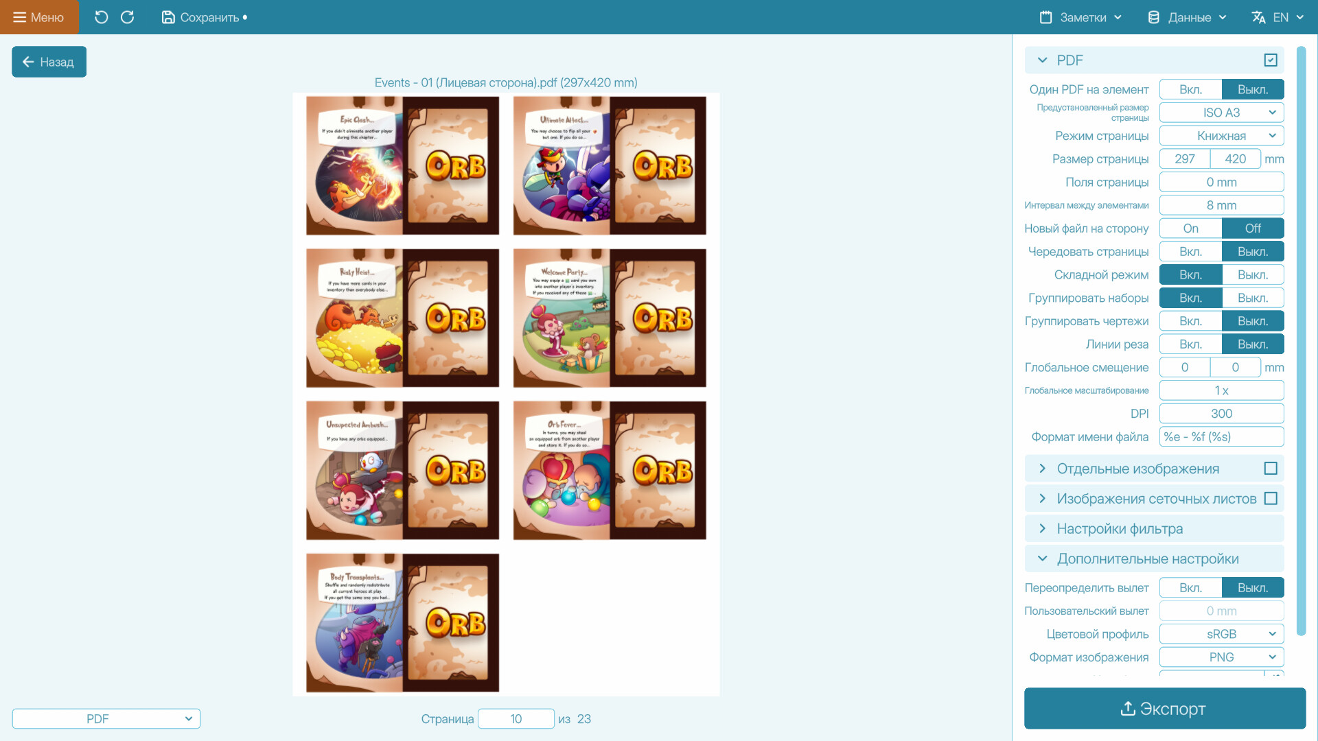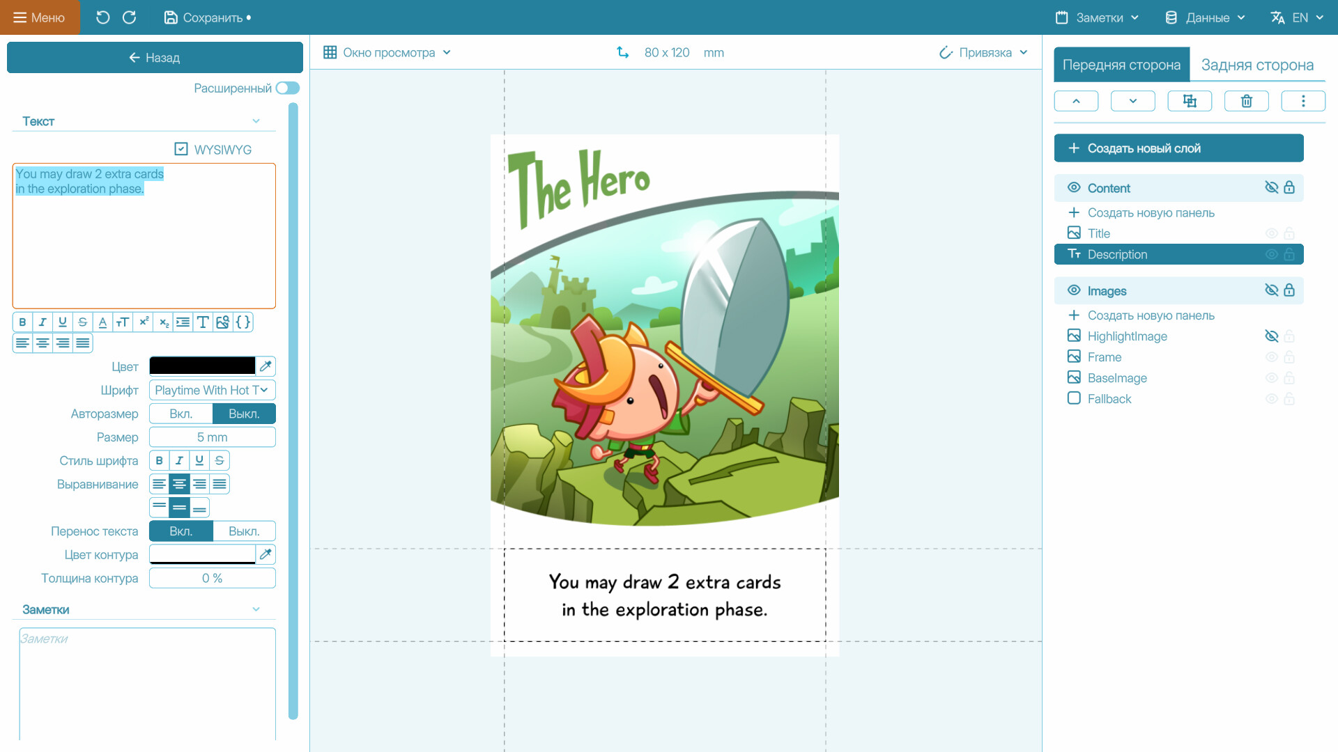 Tabletop Creator — это всё, что вам нужно, чтобы начать разрабатывать, прототипировать и тестировать вашу игровую идею. Создавайте различные игровые компоненты, настраивайте их и экспортируйте игру, чтобы получить физическую копию или играть онлайн!Особенности. Гибкие панели: Создавайте шаблоны с панелями любой формы и типа: изображения, текст, QR-коды, скругленные углы, иконки, зеркальные значения и т.д.Редактор чертежей: Разработайте свои шаблоны один раз и быстро создавайте с ними компоненты. Обновляйте их в любое время и мгновенно просматривайте изменения.Менеджер коллекций: Массово редактируйте все игровые компоненты, организуйте их в наборы в глобальном централизованном представлении.Печатайте и играйте..: Получите печатный PDF с правильными полями, метками резки, складываемым PnP, в любом цветовом формате или размере бумаги по вашему желанию всего одним кликом.. или рендерите и играйте: Подготовьте свои ресурсы для импорта в цифровую среду тестирования, такую как Tabletop Simulator или Tabletopia, за считанные секунды. Далее