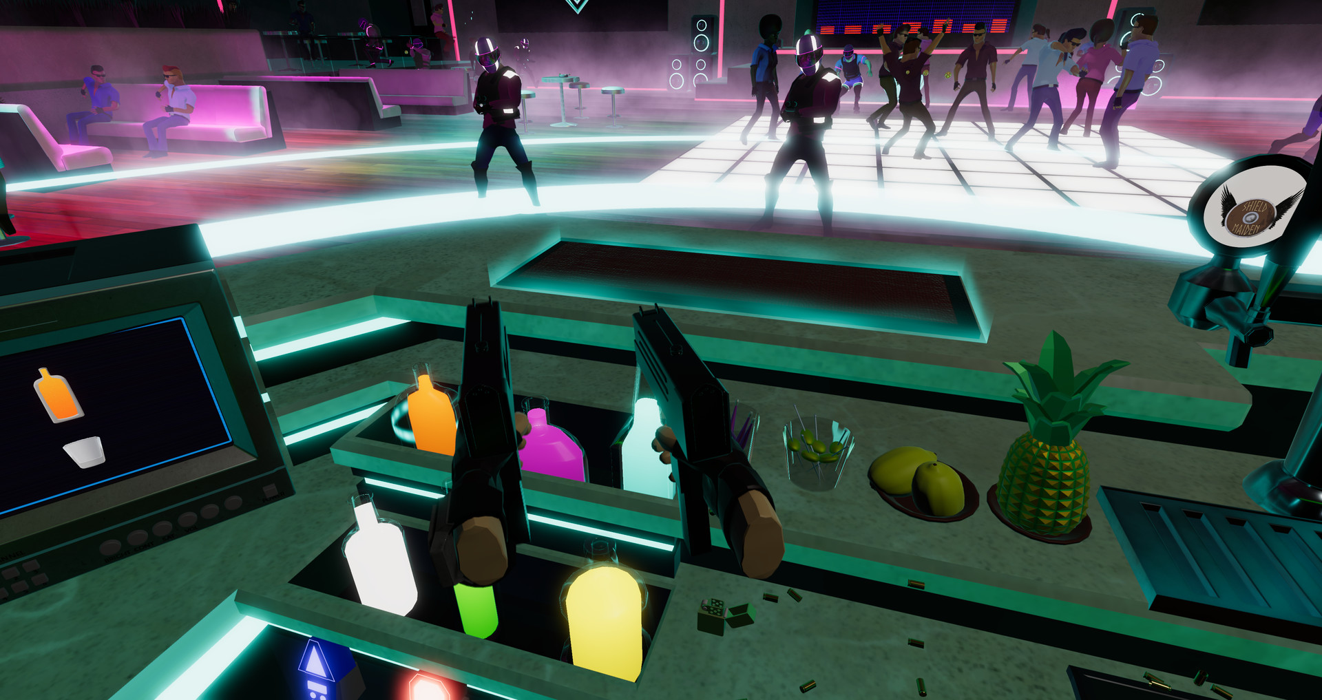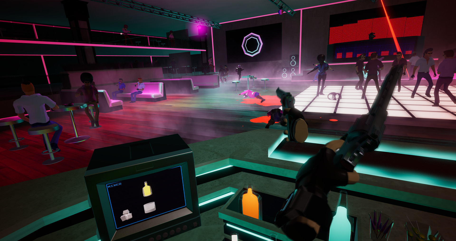 BULLET-RIDDLED BARTENDING. Throw yourself back into an alternative 80's, where gangs rule the streets but the party must go on. As a hard-as-nails bartender, it's your job to keep the drinks flowing and the bad guys off your turf. You have been entrusted with B.A.R.R - the latest and greatest in sentient drink preparation technology, and it's up to you to keep it out of the hands of those who would use it for far more nefarious purposes. Luckily, B.A.R.R is also equipped with the latest in anti-theft technology - you.BE THE 80'S ACTION HERO. It's not enough to be good at mixing drinks, and just being able to take out a bad guy without breaking a sweat won't do the trick either - you'll need to be a wizard at both if you're going to keep B.A.R.R safe, keep the customers happy, and make sure you survive your shift long enough to spend all your hard earned money.FEATURES: - Masterful bartending action- Combat that will make you feel like an 80's action star- Glorious neon covered levels capturing retrowave nightlife - Multiple baddies (yes one of them has roller skates)- A load of different weapons - grab one out of the holster and see what you get!- An apartment to hang out in- A sentient talking bar/new best friend!- Retro 80's A E S T H E T I C Далее