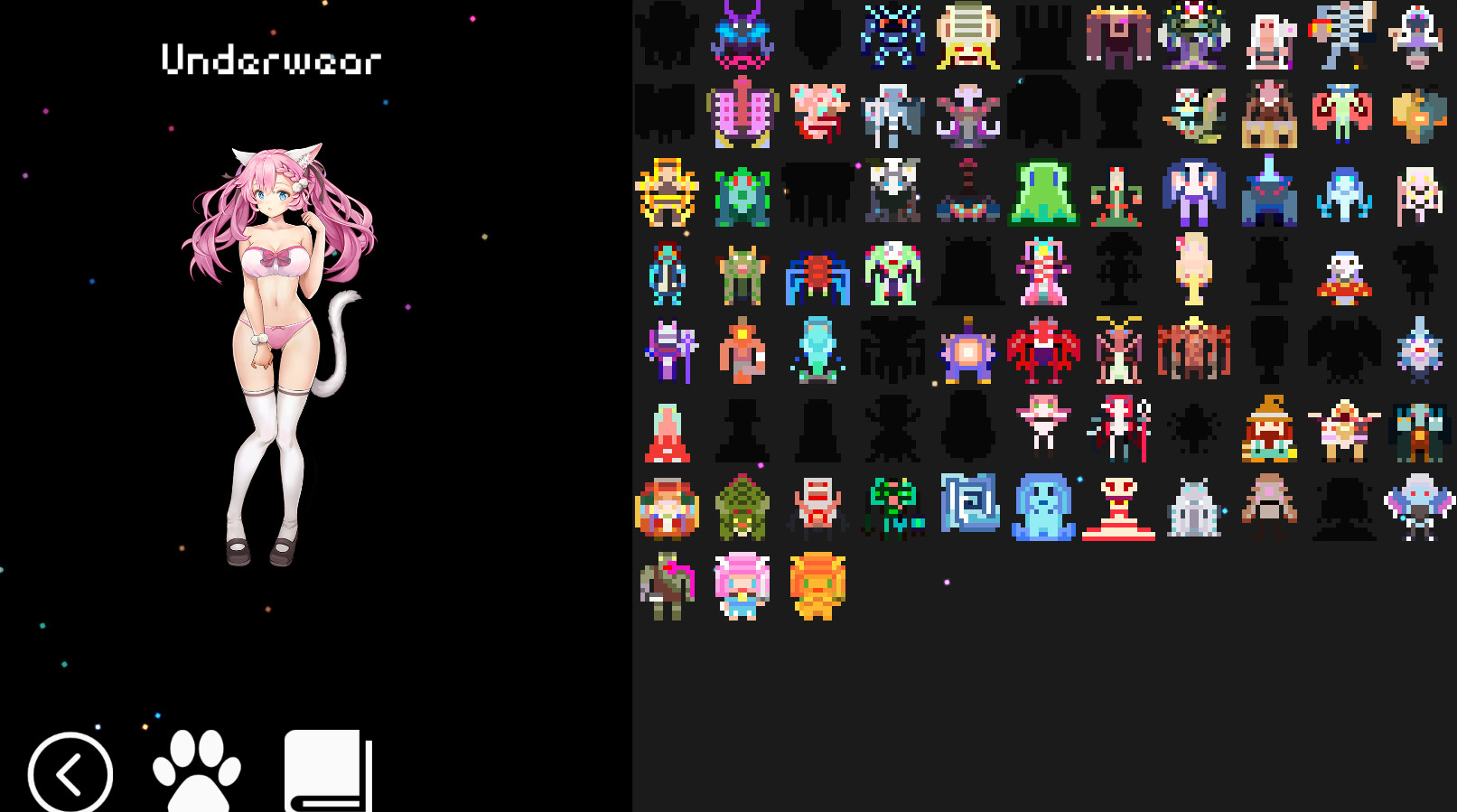 This is the treasure of NEKO DUNGEON This is a very valuable underwear. It will be strange to wear it to fight.New special level: Spiral Labyrinth8 new monsters & 1 very precious treasures(Angel Halo)How to change clothes?Beat a monster!After the appreciation mode is unlocked!Clothes can be changed in appreciative modeThank you for your support and love for this little game!