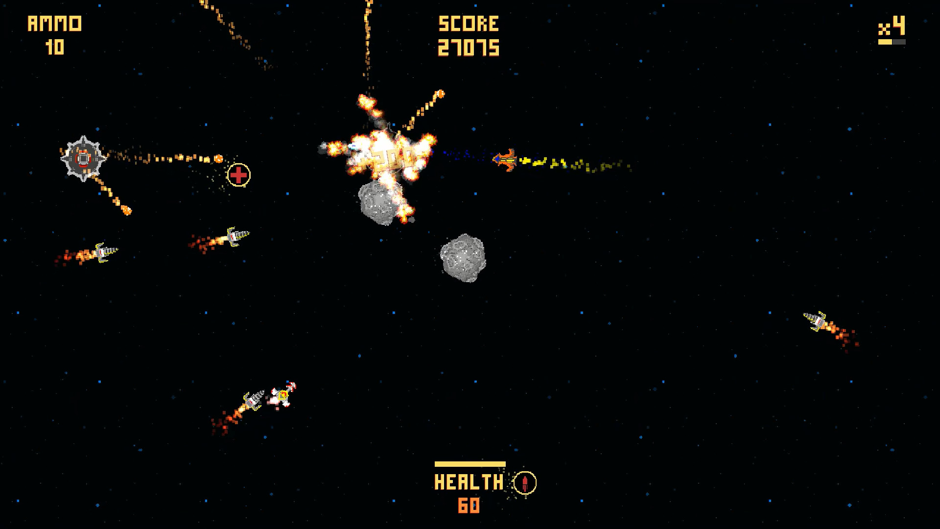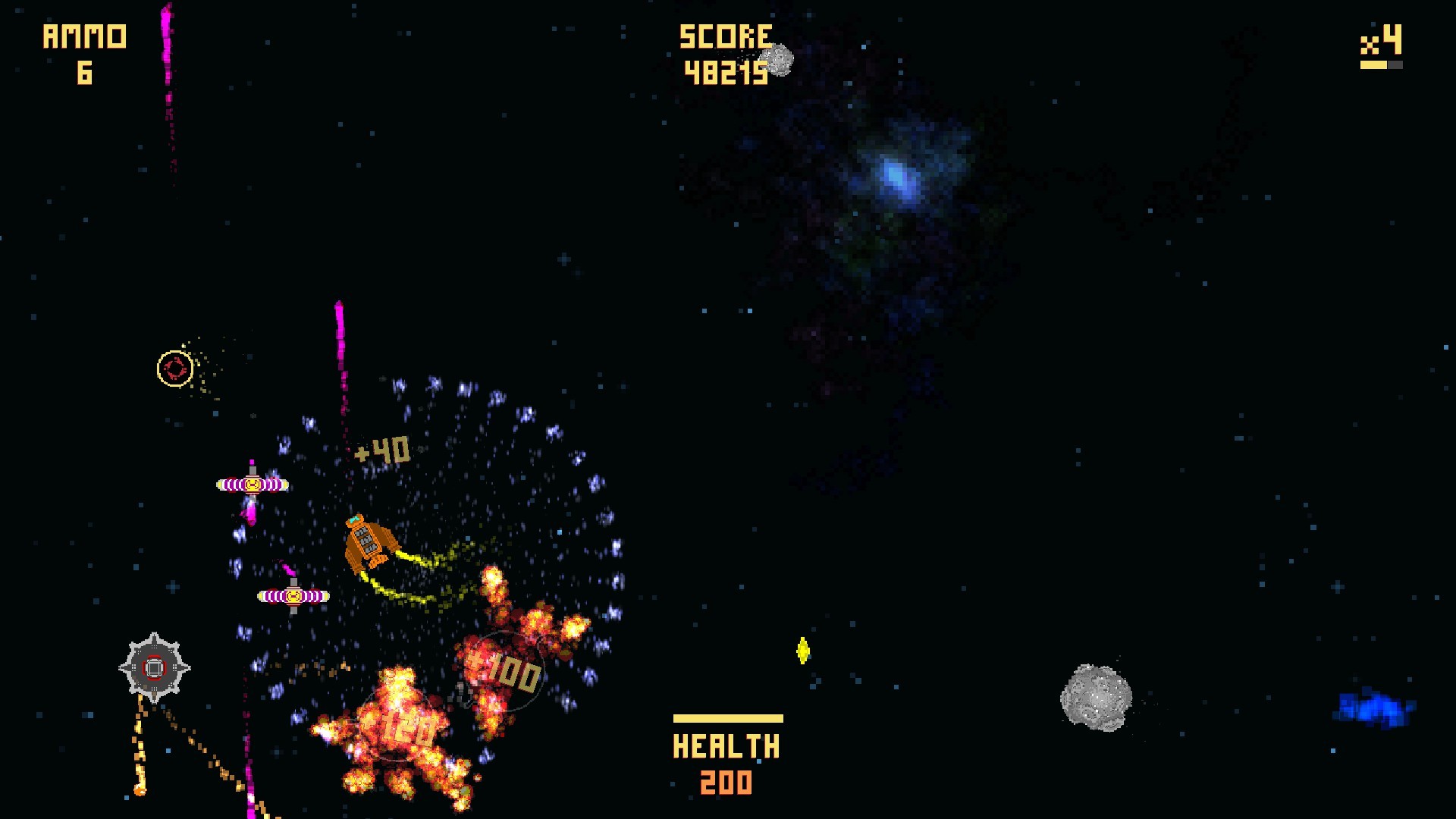 - Геймплей -. Space Mayhem это простая, но затягивающая игра, рассчитанная на множество перепрохождений. Получите как можно больше очков, зарабатывая деньги, собирая улучшения и открывая новые космические корабли. Вдохновением для Space Mayhem послужили как классические, так и современные аркады – в игровой процесс очень легко влиться, а вот остановиться уже сложнее! В игре множество видов улучшений, врагов и кораблей. - Особенности игры -. СОРЕВНУЙТЕСЬ С ДРУЗЬЯМИ ЗА МЕСТА В МЕЖДУНАРОДНЫХ СПИСКАХ ЛИДЕРОВ – Улучшайте счет, побеждая врагов. Избегайте урона, чтобы не сбить множитель счета. Если все получится, вы попадете в международные списки лидеров Steam – впечатлите своих друзей высоким игровым счетом! БЕСКОНЕЧНЫЕ ВОЛНЫ ВРАГОВ - Сражайтесь против постоянно увеличивающегося полчища врагов. Все против вас: начиная с маленьких звездолетов, которые так и хотят протаранить ваш корабль, заканчивая гигантскими миноносцами, цель которых вас подорвать. Кроме того, берегитесь астероидов!УЛУЧШЕНИЯ И ОРУЖИЕ - Используйте улучшения, среди которых есть дробовики, щиты, боевые заряды и даже пожарный шланг. Единственная задача – протянуть как можно дольше. Будьте осторожны – боеприпасы заканчиваются, а оружие может перегреться.ОТКРЫВАЙТЕ НОВЫЕ ЗВЕЗДОЛЕТЫ - С каждого побежденного врага можно собрать немного денег. Покупайте на них новые корабли. У каждого из них свои собственные характеристики, требующие разных стилей игры. Чтобы соревноваться было еще интереснее, у каждого типа кораблей есть отдельные списки лидеров! - Заметка от разработчика -. Спасибо всем, кто заинтересовался Space Mayhem. Делать эту игру последние пару лет было настоящим удовольствием, и я надеюсь, что вы полюбите ее так же, как люблю ее я! Если игра вам приглянулась, добавьте ее в свой "список желаемого", чтобы получать связанные с ней уведомления (например, о дате выхода). Далее