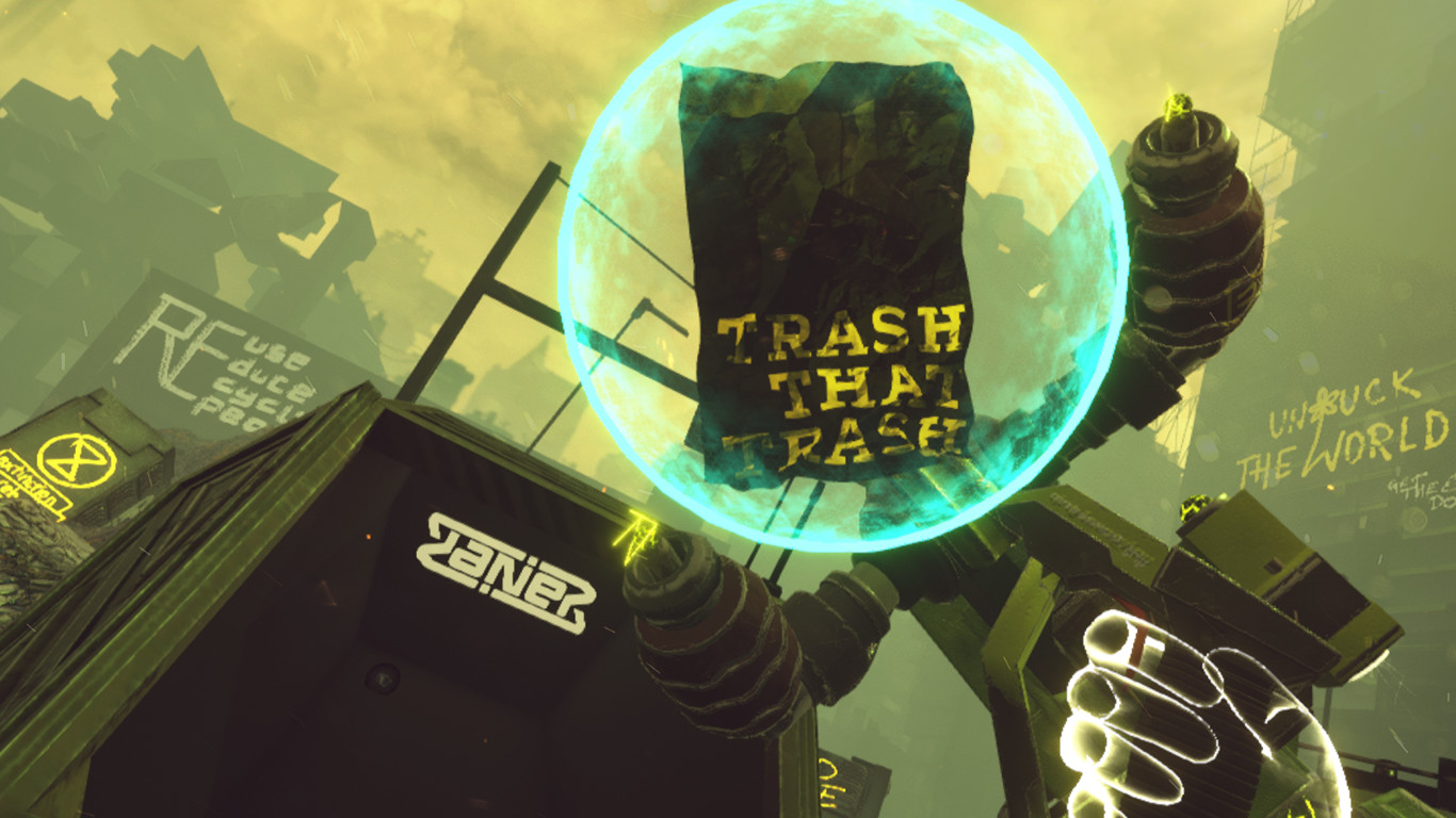 In 2049 the Singularity took place. A.I. destroyed humanity. A few human survivors fled to Mars. Now it's time to come back and.. .. clean up the mess! Trash Rage is an post-apocalyptic arcade-style VR game. Your goal is to catch and sort trash/rubbish using your exoskeleton. Two funky robots throw trash at you (encapsulated in colored bubbles) and you have to sort the trash according to those colors. You must watch out for explosive mines, oil blobs and other objects that might slow you down. If you get really good, you can upgrade to "Brain Blow" to try without the colored bubbles - you have to sort by recognizing objects alone. It gets really intensive! There are also helper features like slow motion and Trash Rage to explore. We prepared many cool combos to score more points with. Try to find those combos on your own. Have fun! Features - Simple - Just catch and throw. - Fun - You have to use your body. Sometimes better then a workout ;) - Accessible - Play the game in just a few seconds. - Challenging - The game requires reflex and spatial awareness. You really have to think 360! - Educational - Trash Rage explores the impact of humans on the planet. Далее