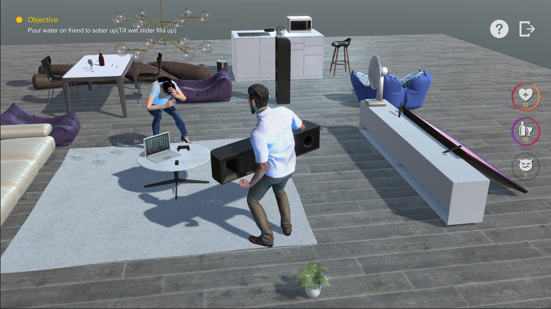 The most funny Sim game this year !!!What will you play if you have a very drunk friend?A warm hearted angel?Or an evilbad guy?You may find answer in this fun sim game. Try exploring in the room and figure out how to sober up your friend,may it's not only just one solution,though,neverhurt your friend,and never do evil!Key Features:Fun Dynamic Puppet Tech.,characters behave different when target/envirment changesTotal random drunk behaviour,you never know what will friend act when you try a moveAmazing physics simulation,high end softbody and fluid sim.The wind blow ground to dry,water will wet your body.You can interact with almost every item,physics sim +puzzle solvingWe will update more contents regularlyFun,real fun! Далее