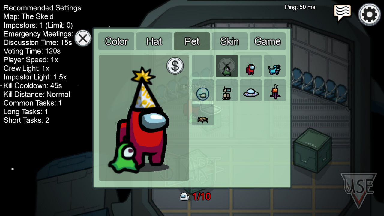 Companionship! The only thing on this ship you can trust! Includes the Brainslug and UFO! (Only one pet can be equipped at a time) Support Among Us servers and Innersloth!