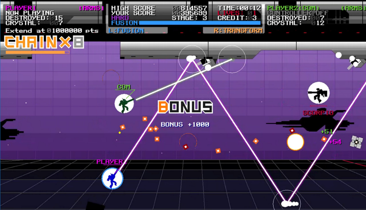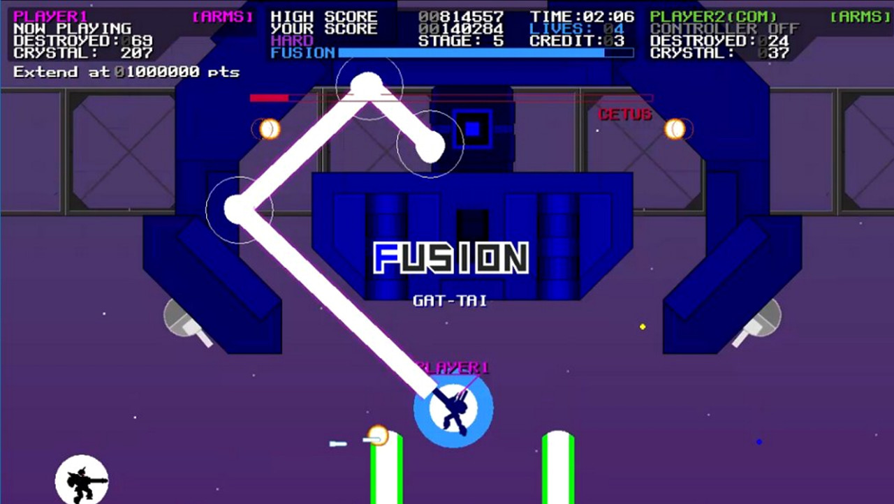 GeminiArms is a side scrolling 2D shoot'em up.OVERVIEW2 players cooperation playable.Twin stick and Side Scroll robot shooting.Robot fusion and transform is hot!Attacks in 360 degrees direction.It's fun alone, more fun if it's 2 players.STORY50 YEARS HAVE PASSED SINCE HUMANS STARTED LIVING IN SPACE.YET, EVEN IN SPACE, WE CONTINUE TO FIGHT FOR RESOURCES AND CONFLICT DEVELOPS BETWEEN EARTHBORN AND SPACEBORN. FEDERAL FORCE DEVELOPS A HUGE LASER WEAPON THAT CAN DESTROY COLONIES.IN RESPONSE, THE LATEST WEAPON GEMINI ARMS WERE DEVELOPED SECRETLY.HOW TO PLAY Далее
