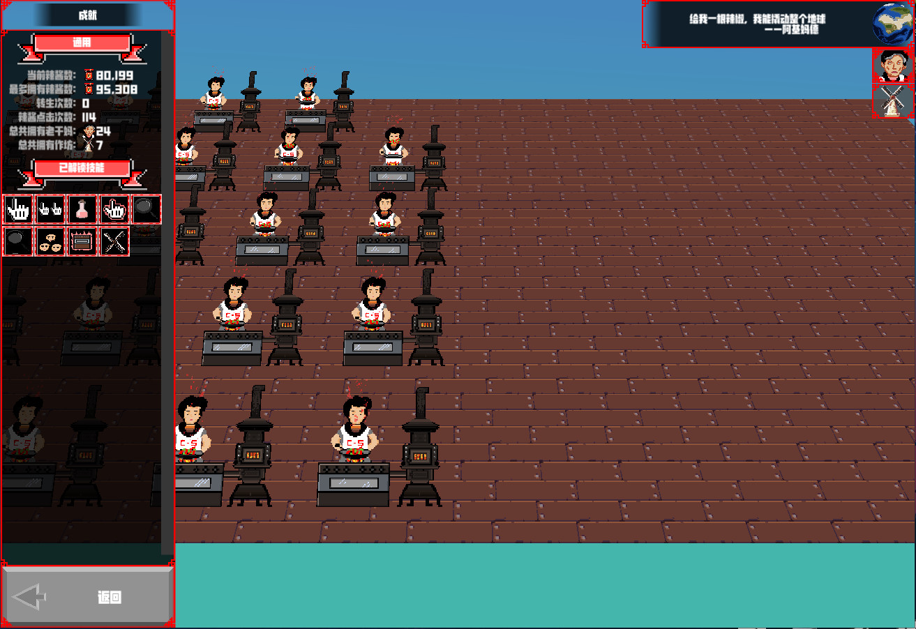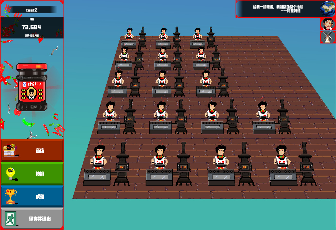 This is a placement game about chili sauce. Game Features. 1. Need to keep producing hot sauce and finish your own hot sauce empire2. Easy to play, just a little bit, you can play smoothly.3. Rich skills and promotion system, let you hang up to the old daysPS:The game will not add BGM. You can open the music player. Put your favorite songs. Then open the game and hang up easily and happily.