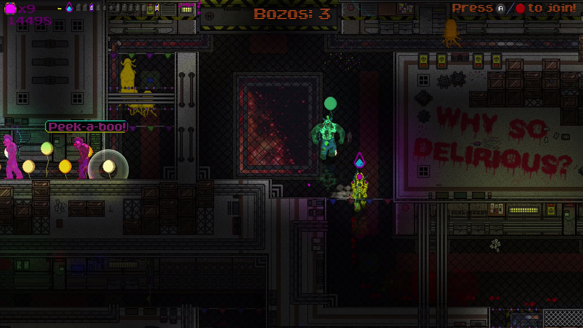 OverviewIn the distant future, mankind is at the brink of extinction. Set on a mission to find resources for their dying species, the voyagers encountered a strange, sadistic alien race with a clownish appearance. Will the survivors escape the gory circus? Or will they be assimilated like all the others?Trapped in a spaceship with electric walls and vengeful alien clowns, the goal is simple: Get back to your cruiser at the docking bay and escape. But these gruesome bozos have some nasty tricks hidden up their sleeves and seem to know your every move. You must outwit and slay any clown that stands in your way, but you must make haste! For as you linger, you attract the attention of the ever-hungry Jugularnaut..Lock and load, kill clowns, and run for your life!Key Features-Heart throbbing music by Dance With The Dead-7 difficulties-4 player local coop/cutup-2 game modes (Escape mode, Survival/Deathmatch mode)-6 bosses-Electric walls-E-Z-Walls (for those who find electric walls too hard or frustrating).-50+ levels -Hardcore mode (1 life)-Freeplay mode Далее
