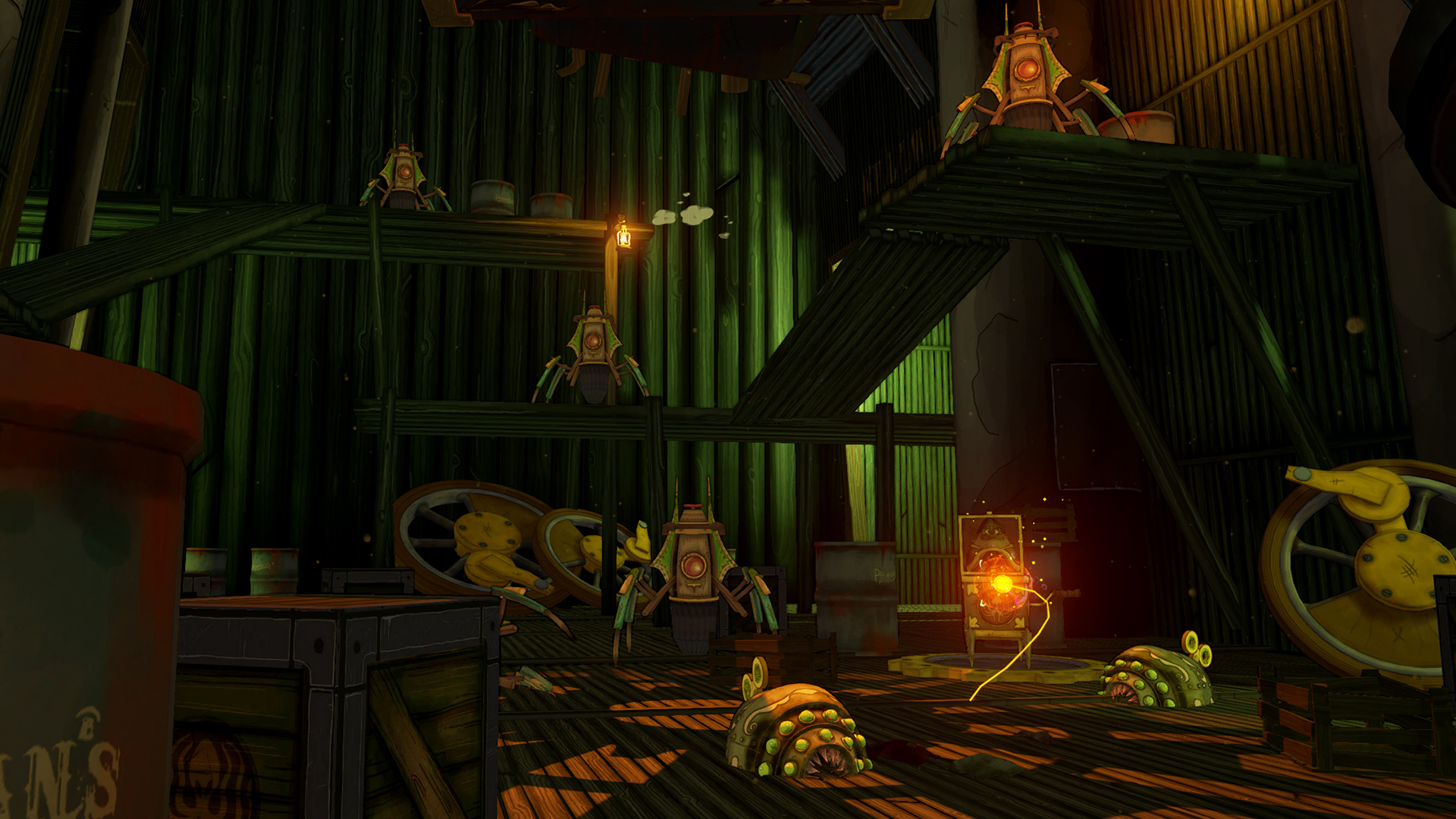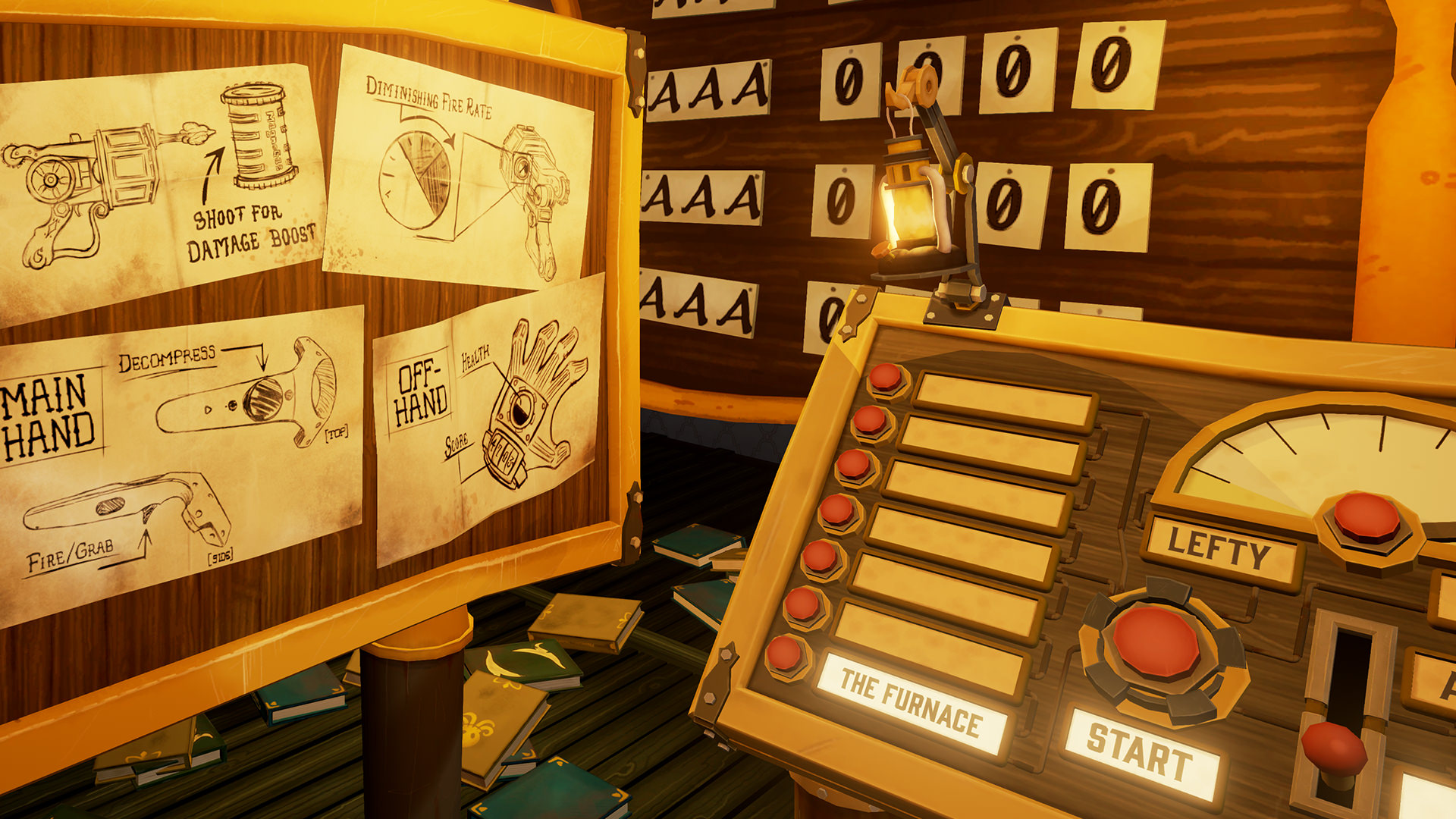OriginsPhinnegan's Factory is set in an original universe, The Sky-High City of Steampuff – first created by Steelehouse. We are a small studio of artists, animators and gamers working in Tulsa, OK and we've been making content for other folks for the last 17 years. For a very long time, we'd wanted to make an animated series – in 2012, we did. We created the Sky-High City of Steampuff and in doing so, created a lot of artwork and lore. When we decided to make our first game, we knew our universe and its unique aesthetic would be a fantastic VR experience – so Phinnegan's Factory was born.FeaturesBEAUTIFULLY CRAFTED - You'll experience an immersive world that is wholly unique, both in tone and style. Every detail has been painted and placed for you to explore. FRANTICALLY FUN GAMEPLAY - This isn't a game you can win by standing or sitting still. You'll need to duck, dodge, shimmy and leap out of danger. BREATH-TAKING LOCALES - Fight back the devious mechanical hordes in the sweltering Furnace Room, the moonlit Trainyard, and in the cavernous belfry of the Clocktower! DUAL DISASSEMBLY - Experience twice the fabulous firepower with a Farraday Model 53 in each hand! Focus your fire or split your salvo while you expertly pace the perimeter … otherwise you are just doubling the danger of being a bad shot. COVER SYSTEM - As decorated Rear Admiral Alexi Asminov famously said, “The best defense is a good sturdy something to hide behind.” Well now YOU can experience that maxim first hand with your very own “something" to cower behind. Trigger the hiding hole with a single shot. Enjoy your cowardice while it lasts. LOCAL LEADERBOARDS - Everything is more fun with friends, especially winning. IMAGINATIVE ENEMIES - You will face waves of mechanized monstrosities. Every robot is unique in design and function – each enemy has its own attacks and weaknesses. POWER-UPS - Ever wished for a little more oomph? Perhaps you've lamented the loss of health! The new power-up system gives you the flexibility and longevity necessary to face the factory and live longer … perhaps. Далее