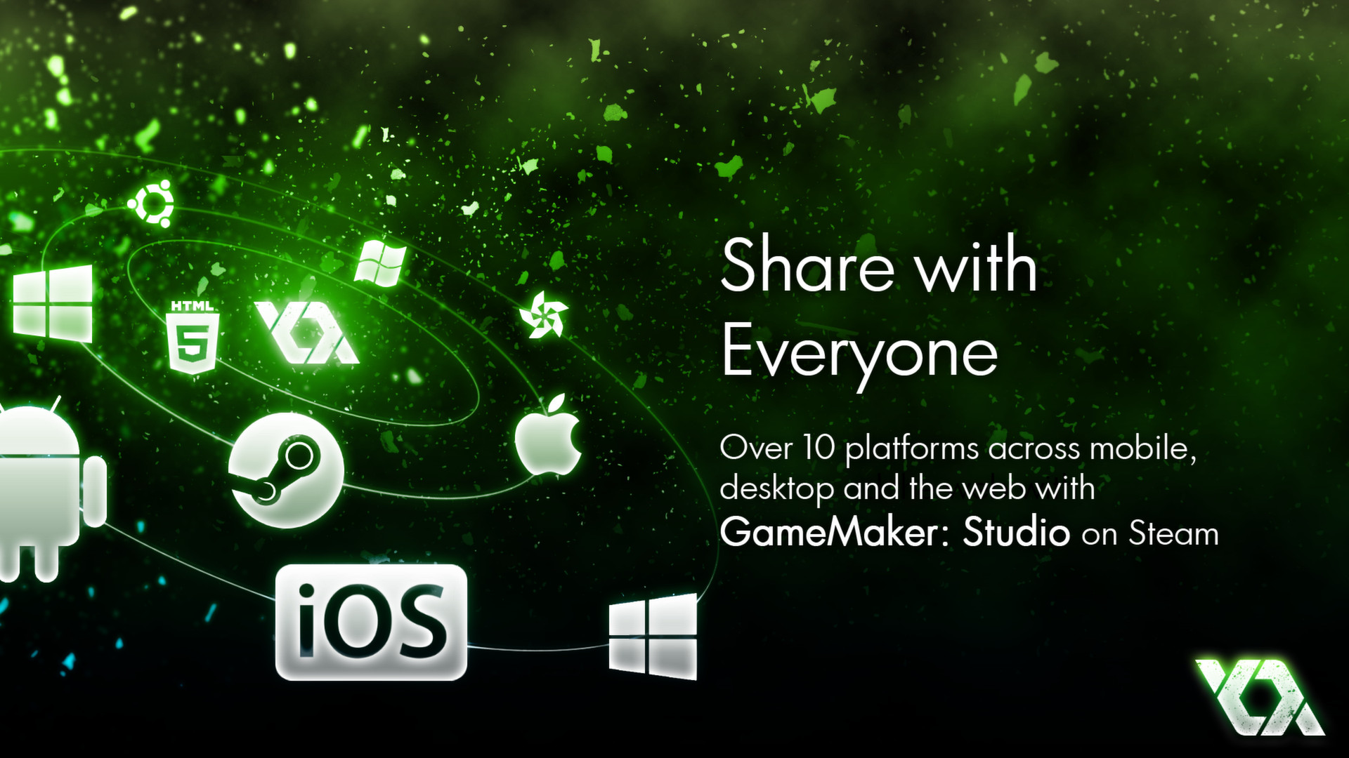 [b]GameMaker: Studio™ MASTER COLLECTION[/b] Bringing all of GameMaker: Studio™'s best features and modules together, including the new YoYo Compiler which allows projects to run up to 100x faster, GameMaker: Studio™ MASTER COLLECTION gives you the power to create, test, monetize and distribute games to iOS, Android, Windows Phone, Windows, Mac OS X and HTML5. On top of this, you also gain instant access to more than 40 million registered Steam users through Steam Workshop, with direct upload straight from GameMaker: Studio™! [h2]Key features:[/h2] [b]Dedicated, game-focused IDE[/b] The GameMaker: Studio™ IDE has all you need to deal with fonts, sounds, images and music, as well as other resources needed to create a game. It enables you to define game entities (known as 'objects') and their behaviours in an intuitive, event-driven way and has an easy to use drag-and-drop interface. [b]Powerful scripting language[/b] With GameMaker: Studio™'s built-in GameMaker Language (GML), you can control every last detail of your game – path finding, physics, object interaction, particles, data structures and more … And should you find that even that is still not enough for your project, you can easily expand GameMaker: Studio™ by using GML, JavaScript and Dynamic-Link Library Extension Packages. [b]Multi-format export[/b] When combined with format-specific modules, GameMaker: Studio™ can take your game's single codebase and produce ready-to-run executables and apps for multiple platforms, with a single click. With modules already available for Steam Workshop, Windows, Mac OS X, iOS, Android and HTML5 - and more to be announced soon - GameMaker: Studio™ is the fastest and simplest way to develop multi-platform games for mobile devices, home computers and the Web. [b]The YoYo Compiler[/b] Games written in Studio can now harness the full speed of the CPU with the new native YoYo Compiler (YYC), allowing projects to run up to 100x faster than before, across all native platforms supported by Studio. Unlocking new possibilities in CPU intensive areas such as artificial intelligence, procedural techniques, real time lighting, enhanced physics, real time geometry deformation, collision and data manipulation. [b]Source Control[/b] GameMaker: Studio™ also includes a comprehensive source control scheme so that working on a project within a team is easier than ever before. Currently incorporating Subversion (SVN), and with more solutions on the way, GameMaker: Studio™ is the only development tool your team needs to get things done in record time. [b]Developer Services [/b] To help easily monetize games, we've given developers unprecedented access and removed the technical hassle of connecting them with some of the biggest advertisers, analytics and engagement services on mobile and web. Далее