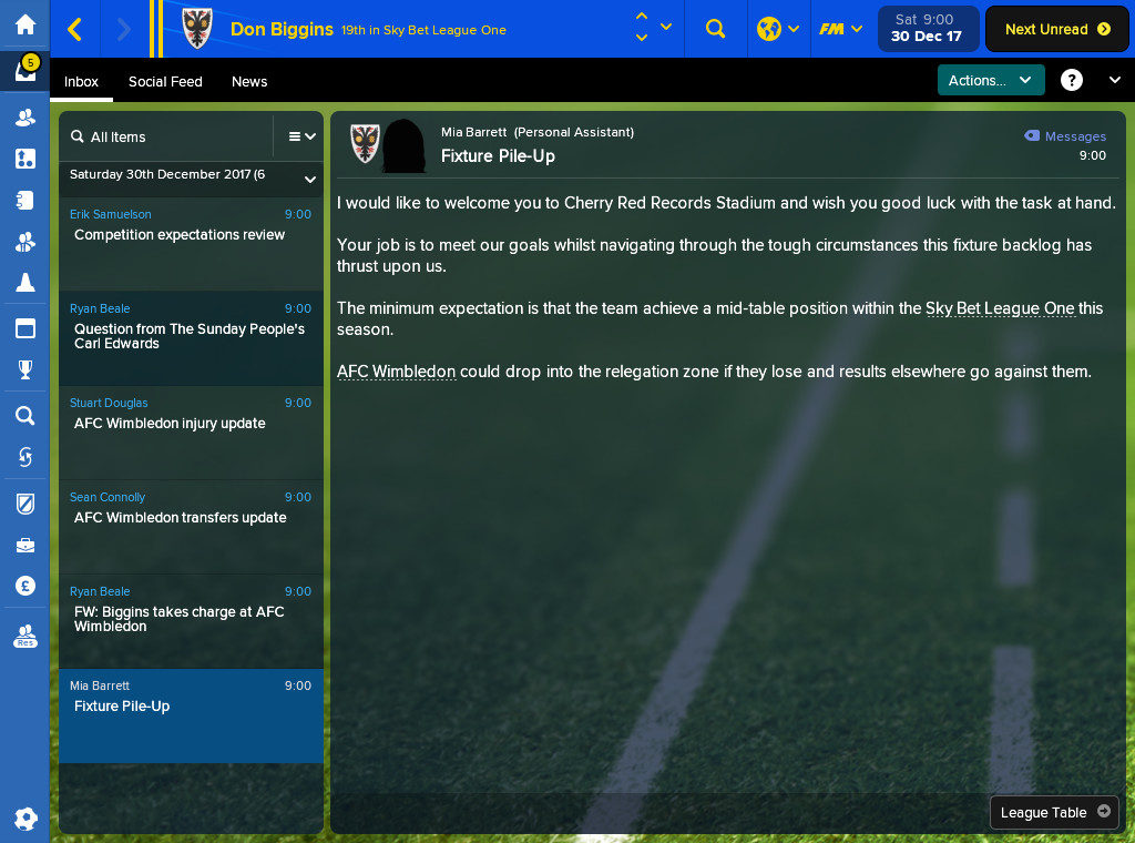 Football Manager Touch 2018. Fixture Pile-Up Challenge