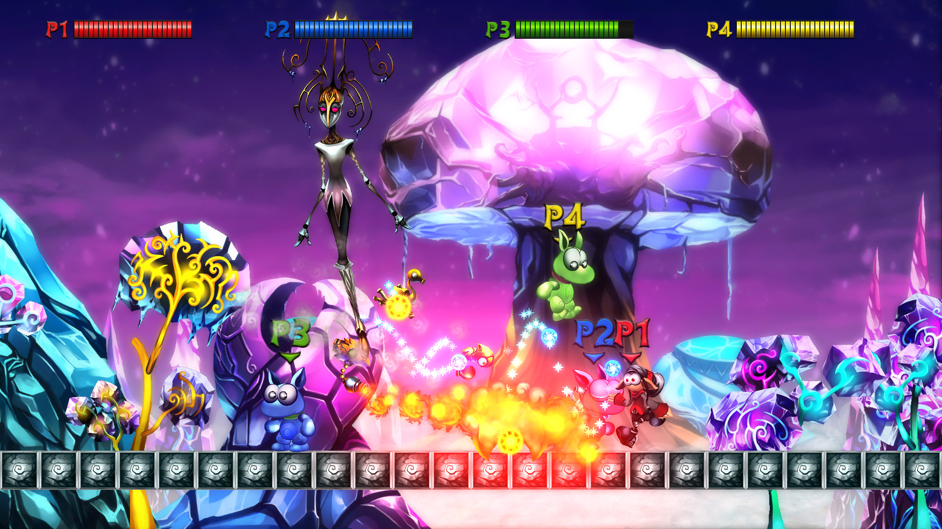 From Director Luc Bernard comes two new stories set in the world of the critically-acclaimed Desert Ashes. Guide Little Thief and Angel through challenging 2D platforming stages, as they seek the wisdom of an enigmatic Professor. Defeat hordes of robotic enemies with the help of the RoboBuddy combat drone and unlock new drones with different attack types, all with 360° aiming. Controller highly recommended.Between you and the Professor are a multitude of machines eager to put a stop to your adventures. Keep your wits about you as you dodge bullets, missiles, and bombs from Jumali's robot army while navigating stages filled with spikes, bottomless pits and other traps. Collect cogs from defeated robots and unlock new drone types with more ways to fight.RoboBuddy: Simple and dependable, the RoboBuddy's basic form fires a long-range projectile.Teslar: Discharges bolts of electricity that multiply and bounce off walls. Shocking!Swanwave: Who needs to aim? The Swanwave shoots balls of energy in a wave of increasing width. Less effective in tight spaces.Rockettoh: Explosive rockets launched in an arc.Bombastii: Lobs rolling bombs; perfect for enemies beneath you.Aquata: This fishy drone fires a powerful ball of condensed energy at a slow rate.Corrosoe: Launches vials that explode in a shower of deadly acid.Flameburster: Sprays fire at a limited range. Hot stuff!More fun with friends! Mecho Tales supports up to four players in cooperative multiplayer. Team up for frenzied, action-packed adventure! Далее