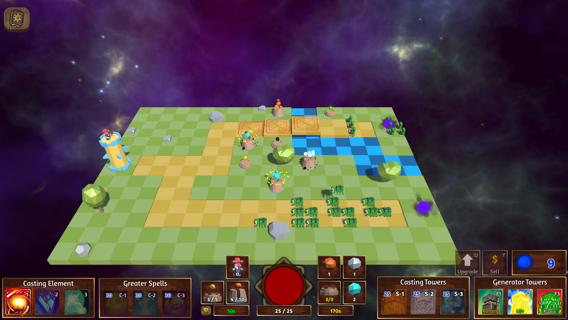 The Wizard's Tower is a Tower Defence game with a twist. As with standard Tower Defences enemies will advance upon the Wizard and attempt to destroy it. You will stop them using the wizards immense magical powers by conjuring up and utilising "Casting Towers". "Casting Towers" allow you to channel the Wizard's power into "Spells". These come in three elements, Fire, Ice and Storm. Unlike most Tower Defences you choose when to fire each tower individually giving you far more control over how to get different spells to work together. As well as the Elemental spells the Wizard has a variety of trump cards at his disposal. Greater Spells create game changing moments allowing you to steal victory back from the jaws of defeat, or turn ugly goblins into cute little bunnies. The enemies come in a variety of shapes and sizes. Most as classified as standard and have varying different skills, speeds and health to deal with. However the real threat is the boss class enemies. Far larger than standard enemies boss enemies are extraordinarily powerful with unique and powerful skills that need a bit of extra thought to beat before they reach and destroy your Tower. Далее