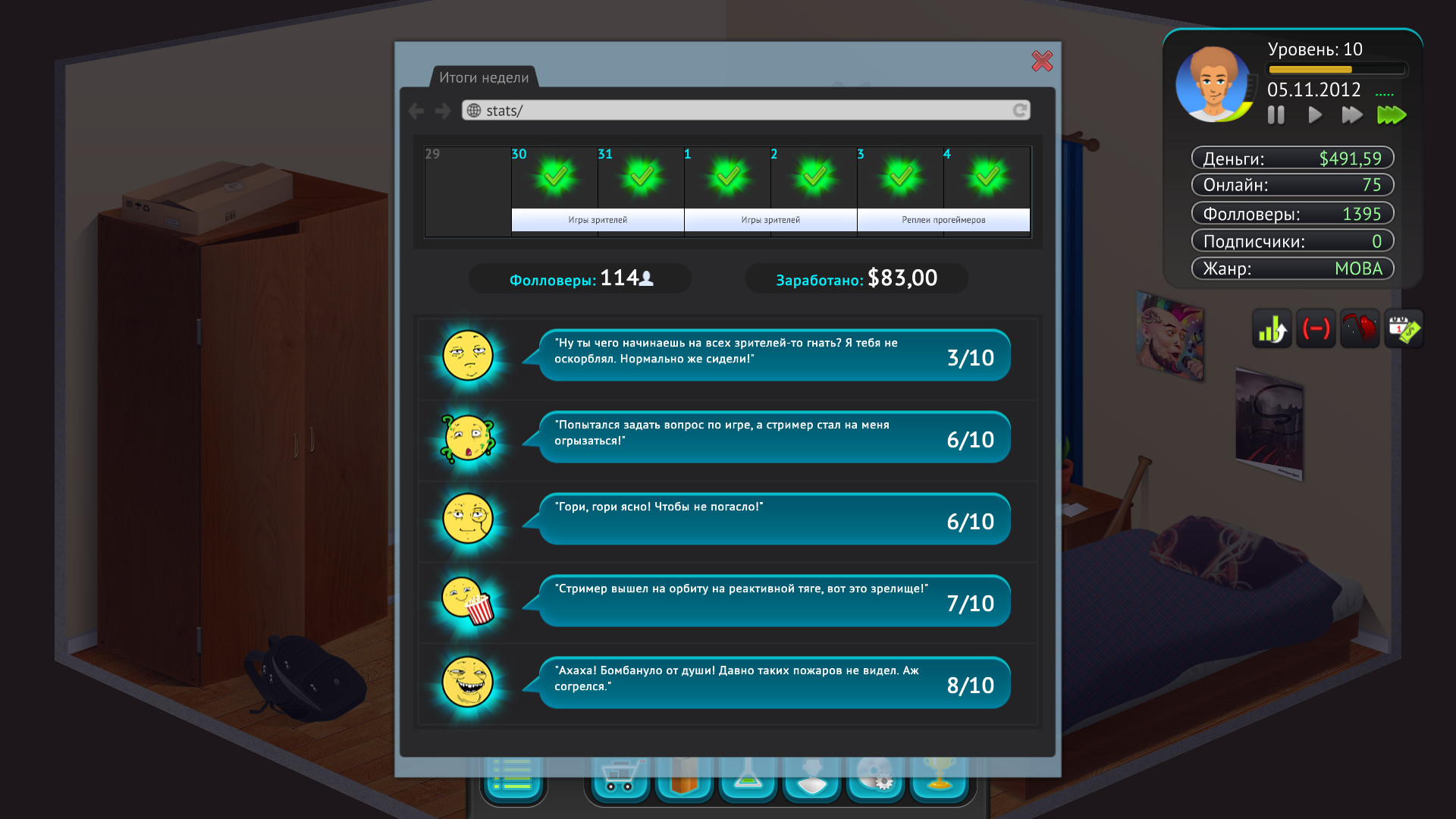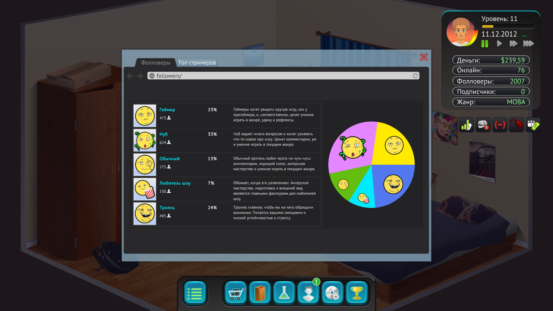 Игра в жанре RPG-Simulation, в которой вам предстоит создать собственного персонажа стримера и попытаться выжить! Как родители могут повлиять на вашу карьеру? С какими событиями и трудностями вы столкнетесь? Как часто у вас будет гореть на троллей? Ваш выбор сильно влияет на последствия! Ответы на эти вопросы и многие другие ожидают вас в игре. Далее