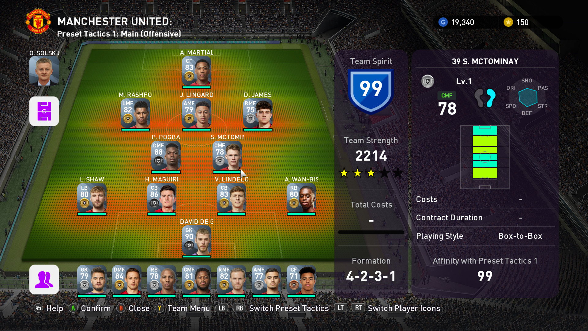 eFootball PES 2020. myClub MANCHESTER UNITED Squad