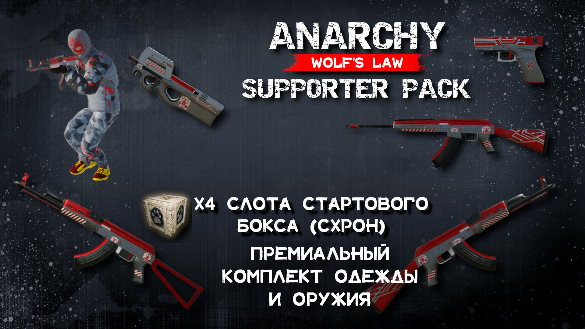 Всем привет, мы рады анонсировать Anarchy: Supporter pack. Это набор дополнительных плюшек для людей, которые хотят поддержать разработчиков и поучаствовать в развитии проекта.В набор Anarchy: Supporter Pack входят следующие цифровые предметы: * + x4 слота стартового бокса (Схрон)* + Премиальный...Всем привет, мы рады анонсировать Anarchy: Supporter pack. Это набор дополнительных плюшек для людей, которые хотят поддержать разработчиков и поучаствовать в развитии проекта.В набор Anarchy: Supporter Pack входят следующие цифровые предметы: * + x4 слота стартового бокса (Схрон)* + Премиальный комплект одежды и оружия. От всего сердца благодарим вас за вашу поддержку, поскольку мы разрабатываем для вас лучший экономический экшн-шутер на выживание. Команда AWL.Далее