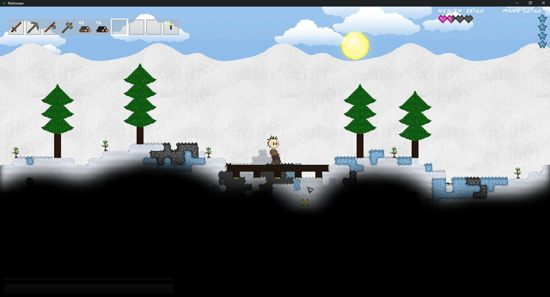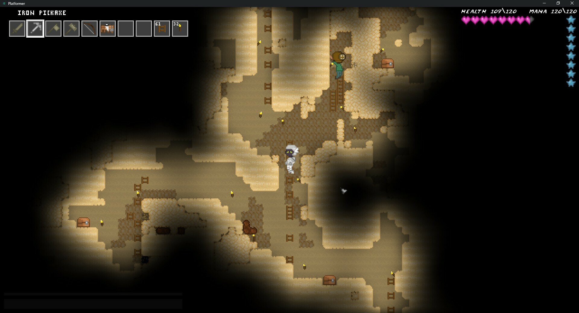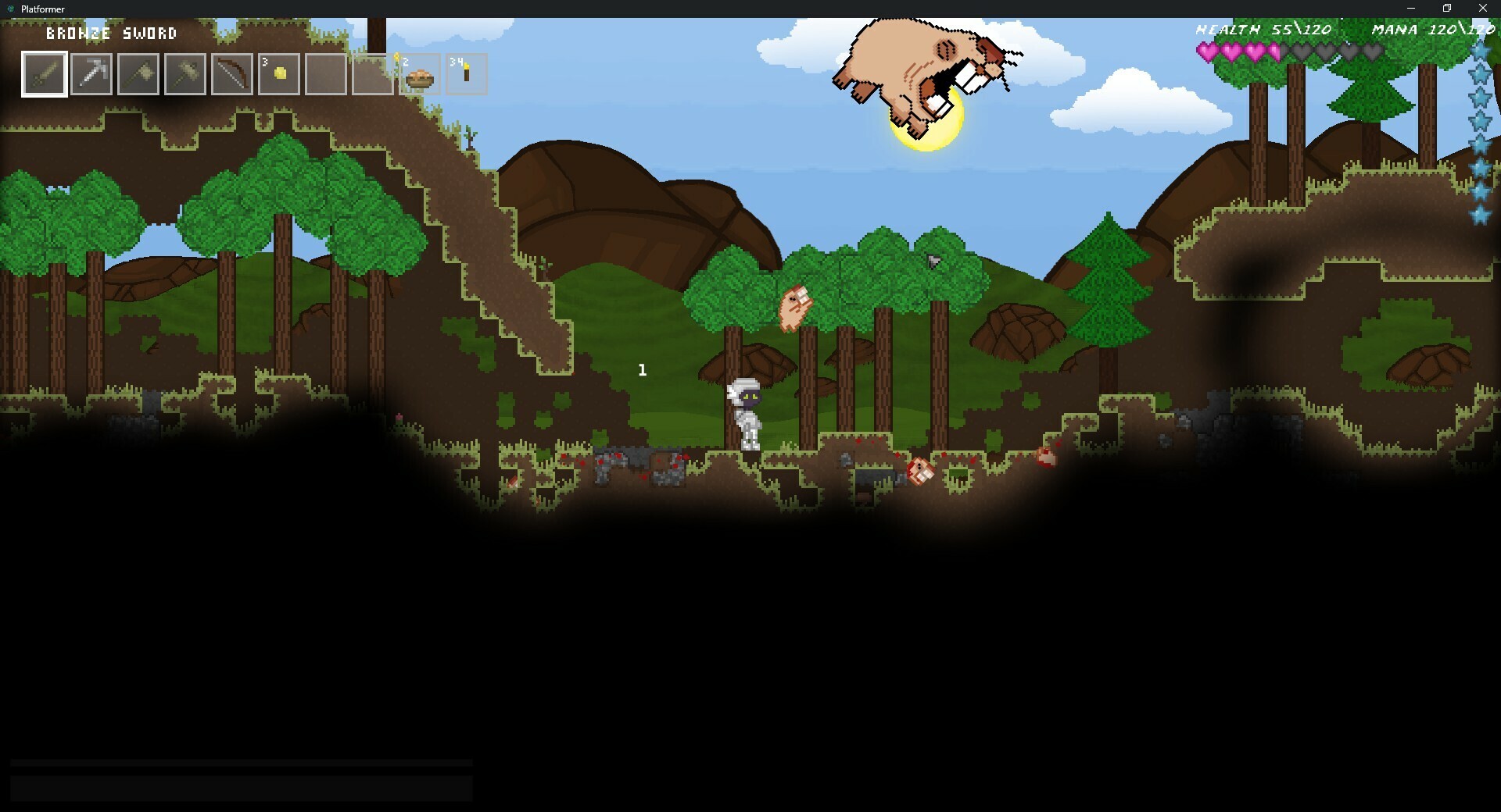 3Elements presents Platformer!. What kind of mystery is hidden in the world of Platformer? A day and night system that will have you crafting torches from animal fat to see at night.Continuous scrolling huge worlds, multiple biomes, deep oceans, vast skies, unique enemies, weapons, tools, and more!Collect ore and create armor, fight monsters and build a baseTrap animals that are too fast for you to chaseFind equipment to become stronger and fasterDecorate your house with furniture, customize your character, and play with your friends!This game is not complete!Platformer is made by a single developer with their free time, please be patient for new updates.Key Elements. Sandbox crafting survival system Randomly generated looping worlds Customizable characters Unique monsters and weapons Free updates Multiplayer Далее