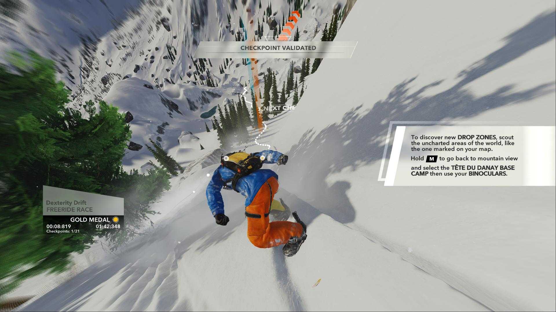 Steep — это игра в первую очередь об атмосфере и погружении в нее, а не о соревновательной части. Какого-то строго сюжета здесь нет, есть лишь 9 историй горных вершин, покоряя которые мы типа снимаем фильм. В остальном плане игрок предоставлен сам себе и прокачивается путем сначала нахождения, а затем прохождения заданий. Уровень персонажа дает доступ к еще более сложным заданиям и локациям. Задания достаточно разнообразны, насколько это возможно для симулятора экстремальных спусков, и даже неудачные попытки не вызывают злости или раздражения, так как ты просто наслаждаешься ощущениями от спуска, попутно пытаясь пройти трассу как можно быстрее. Всего игрокам доступно 4 средства передвижения: параплан, вингсьют, лыжи и сноуборд. Наибольших комплиментов от нас заслужил вингсьют — действительно завораживает.